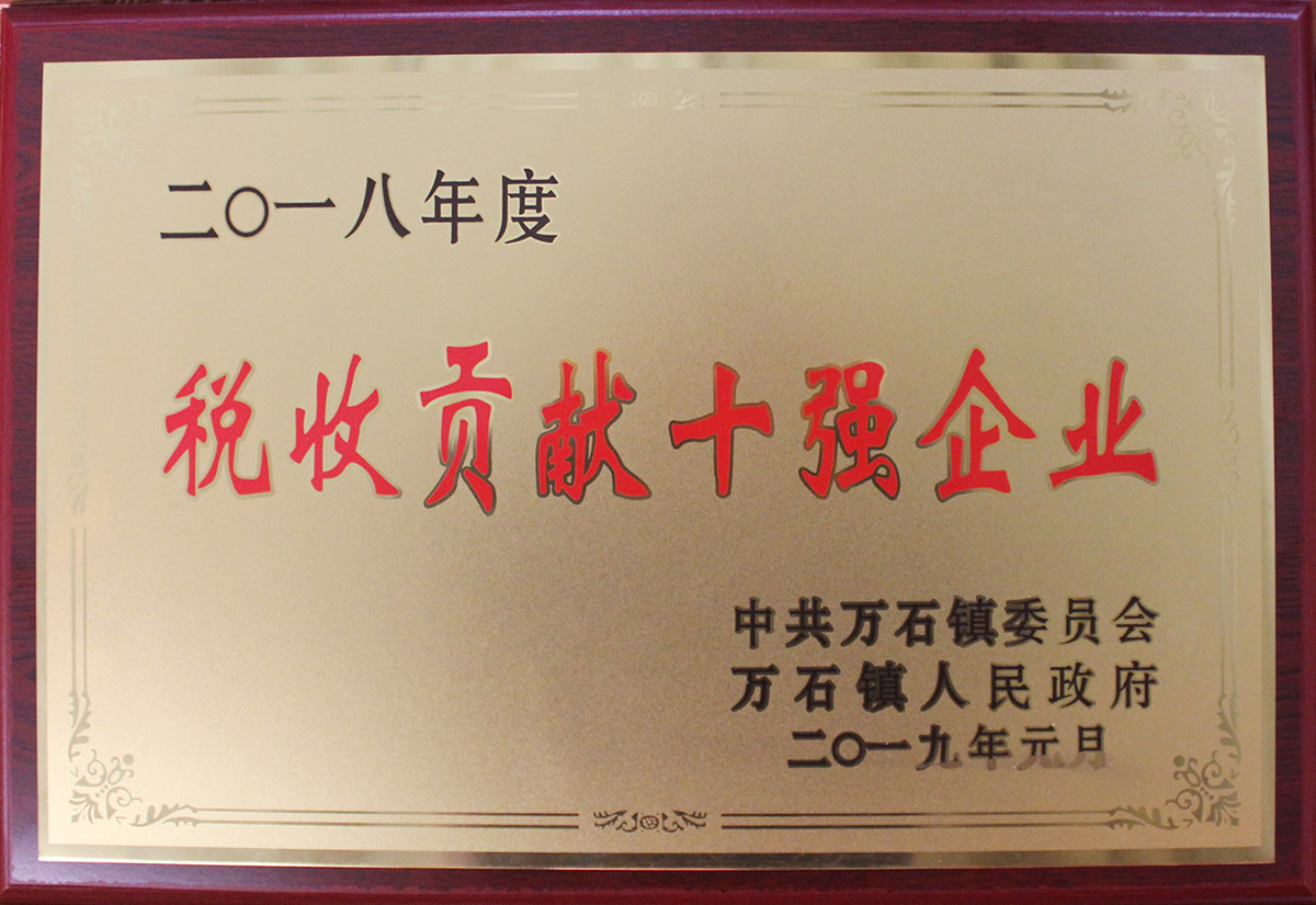 • 2018年度稅收貢獻十強企業